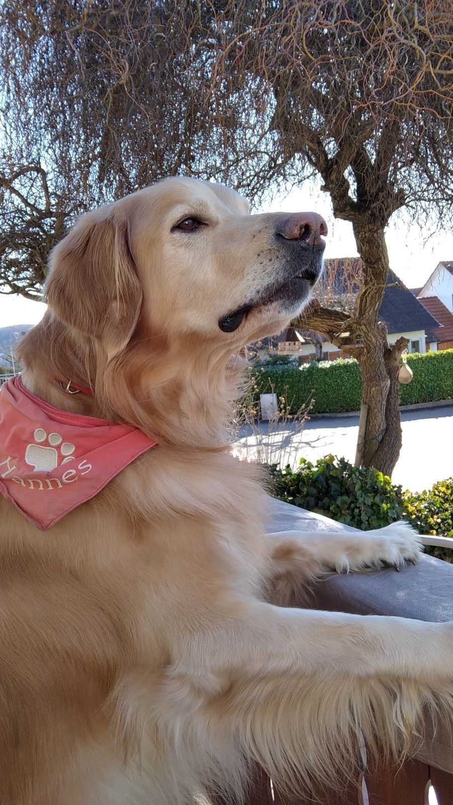 Ich bin ein unkomplizierter Hovawart, der Zuhause ein Kampfschmuser ist, draußen bin ich eine "Rakete", und habe den Schalk im Nacken. Meine Lieblingsbeschäftigung: fressen und Mäuselöcher buddeln.