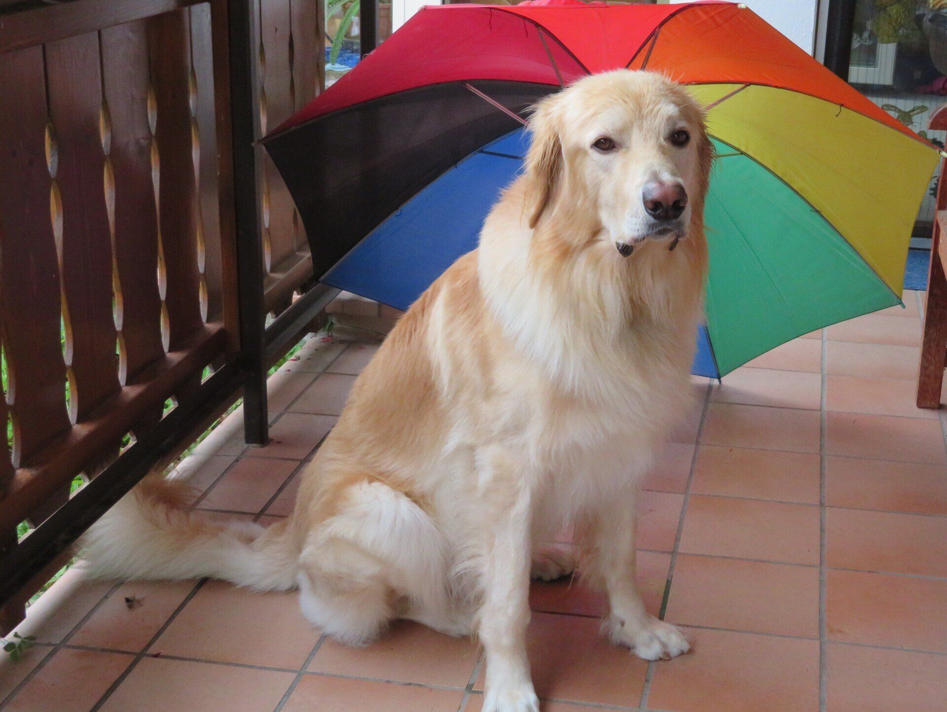 ...auch die Optik kommt nicht zu kurz: flatternde Gegenstände bringen mich nicht aus der Ruhe, locker lege ich mich unter einen bunten Regenschirm...Folien, Tücher, Masken, Verkleidungen jeglicher Art sind mir einfach wurscht!!