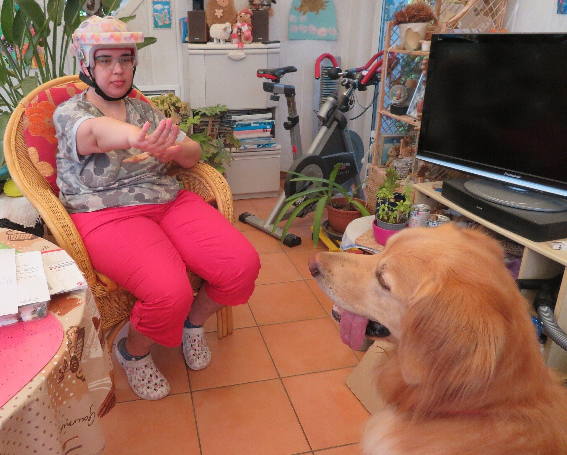 April 2020: - heute ein absoluter Glückstag für Tamara! Ein tonischer Grand-Mal-Anfall, der Tamara, die gerade am Sofa stand, die Beine wegzog = ein Sturz!! Der Anfall dauerte ca. 20 Sekunden und Tamara fiel weich aufs Sofa....natürlich war ich sofort bei ihr, musste aber still neben ihr sitzen bleiben. Der Anfall war verbunden mit heftigem Tremor (schütteln und zittern der Arme und Hände), sie verdrehte die Augen, der Körper wurde erst weich, dann kurz steif. Sie drohte, vom Sofa zu rutschen...ich stützte sie ab, so gut es eben ging! Ganz plötzlich griff sie nach mir, packte meinen Kopf, verdrehte mir die Ohren, krallte ihre Hände in mein Fell und pustete mir sogar in ihrer Verwirrtheit ins Gesicht, begleitet von lautem Geschrei und noch lauterem Lachen - eh, ich bin ganz cool geblieben! Frauchen hatte schon Angst, dass Tamara zu grob werden könnte, aber ich kenne das ja schon seit meiner Welpenzeit ....und kann das gut aushalten - für meine Tamara!! Zur Belohnung durfte mir dann Tamara ein halbes Milchbrötchen geben - mmmmhhhh, so lecker!!